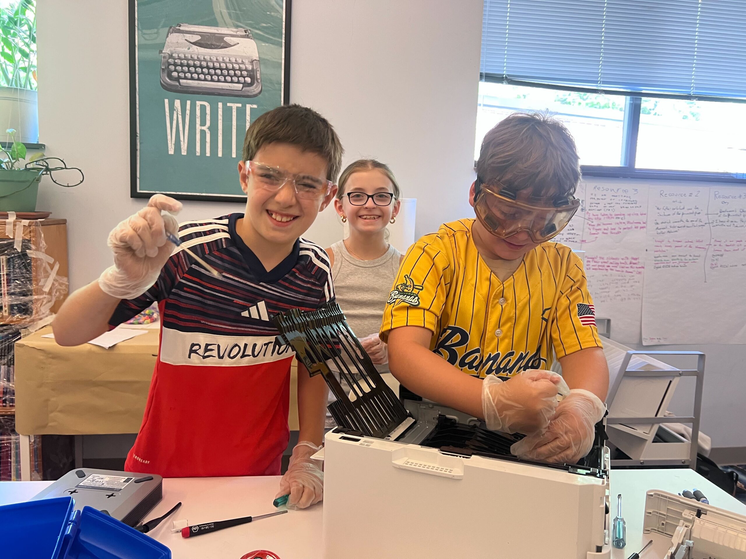 We offer year-round enrichment programs for children aged 5-14 in a dynamic, hands-on environment, including afterschool classes, April Vacation Programs, and Summer Enrichment. Students engage in various subjects such as engineering, biotechnology, math, arts, theater, design, electronics, music, chemistry, physics, teamwork, and forming friendships while exploring their sense of themselves as individuals, learners, and collaborators.